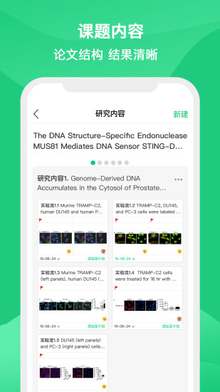 labinone科研流程協(xié)助平臺(tái)軟件是便捷的手機(jī)科研推進(jìn)器app,支持在手機(jī)上查看詳細(xì)的課題內(nèi)容和進(jìn)度,可以制作個(gè)人計(jì)劃和查看團(tuán)隊(duì)計(jì)劃,匯集了豐富的文獻(xiàn)資料,支持查閱參考,歡迎有需要的朋友下載使用!