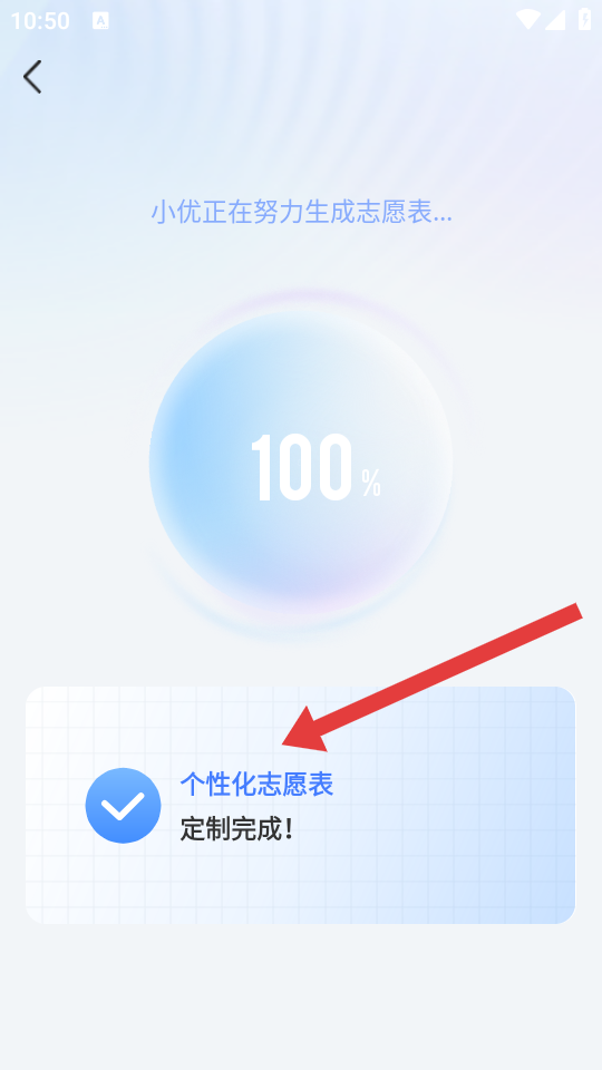 4、當(dāng)頁面提示個性化志愿表定制完成,代表志愿表已成功生成,可進(jìn)行后續(xù)查看或調(diào)整。