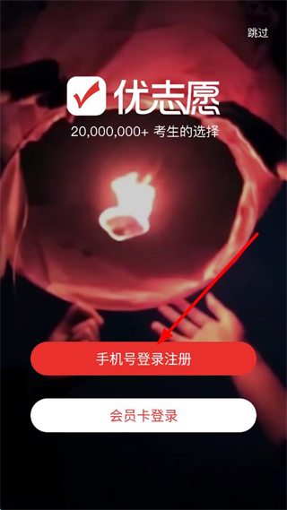 1、打開優(yōu)志愿APP,點擊手機(jī)號登錄注冊按鈕。