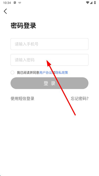 3、在密碼登錄頁面輸入手機(jī)號和密碼,勾選同意用戶協(xié)議后,點擊登錄按鈕即可。