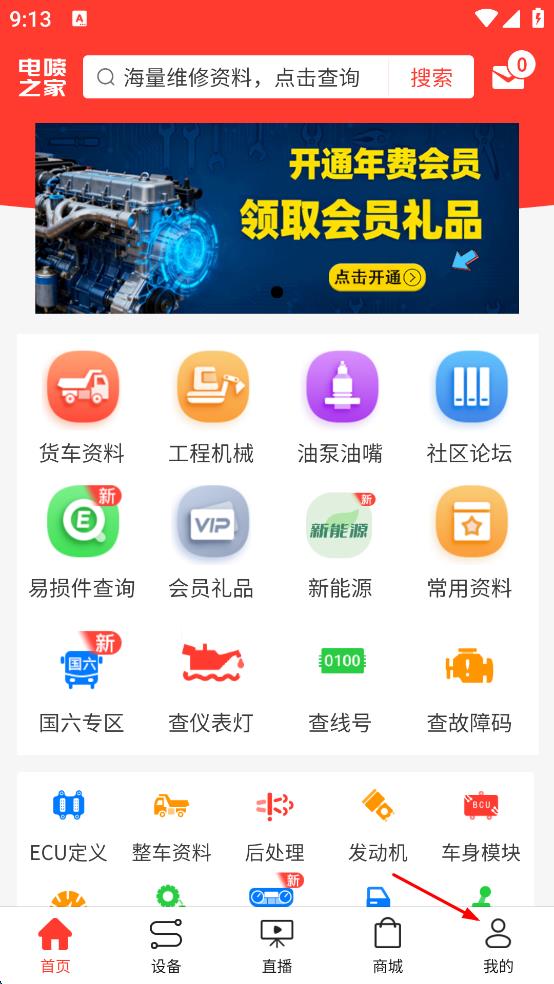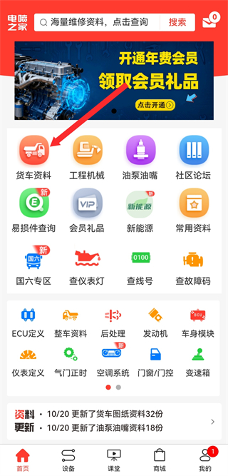1、打開電噴之家app,在首頁點擊貨車資料圖標(biāo),進(jìn)入貨車資料頁面。