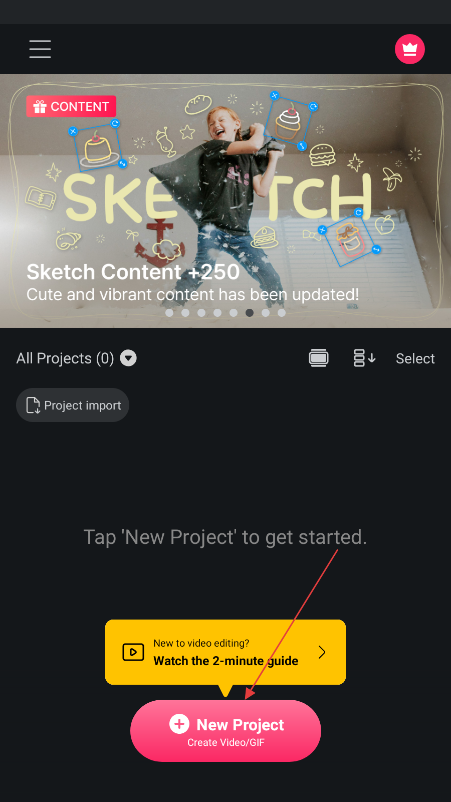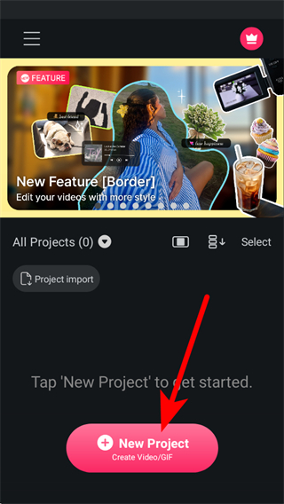 1.打開VLLO應(yīng)用,點(diǎn)擊New Project按鈕創(chuàng)建新項(xiàng)目。