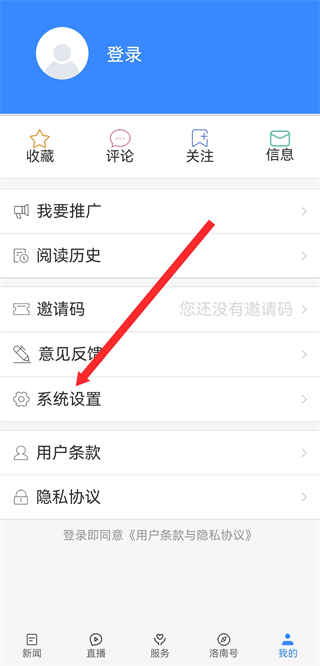 1、打開愛洛南APP首頁,點擊底部我的,進入個人功能板塊頁面。
