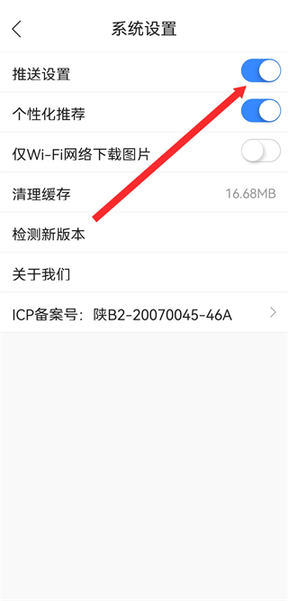 3、在設(shè)置操作界面中,找到推送設(shè)置的開關(guān),點擊進行關(guān)閉。