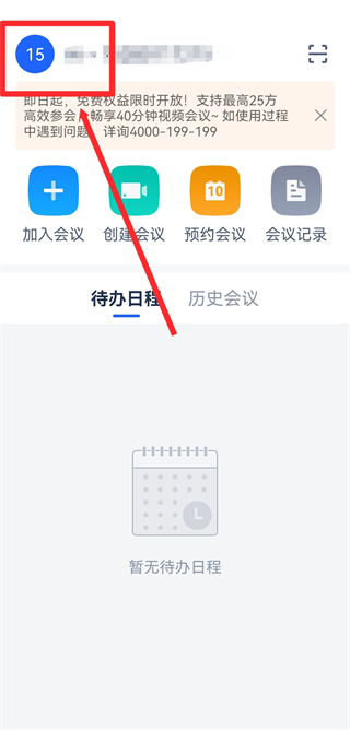 1、打開(kāi)訊飛會(huì)議APP,點(diǎn)擊左上角的頭像,進(jìn)入個(gè)人的頁(yè)面。