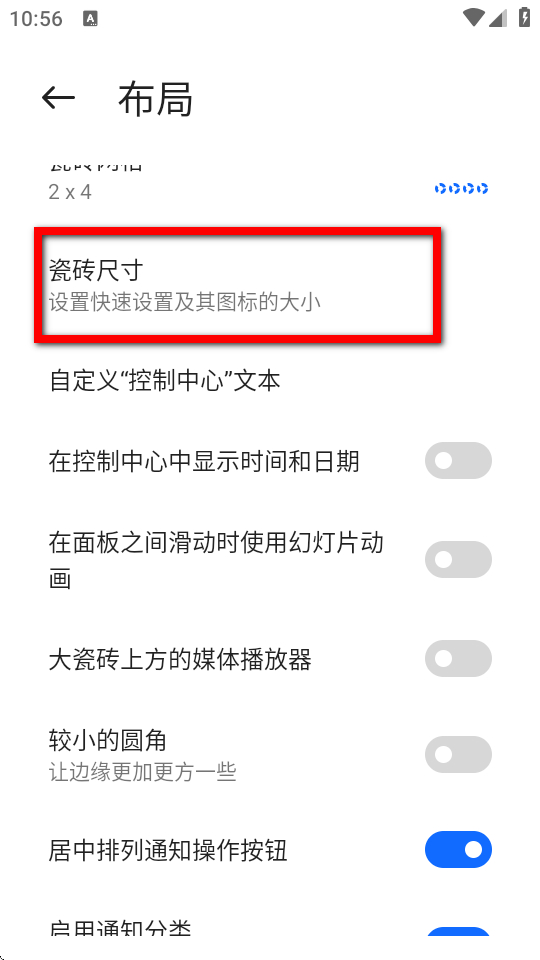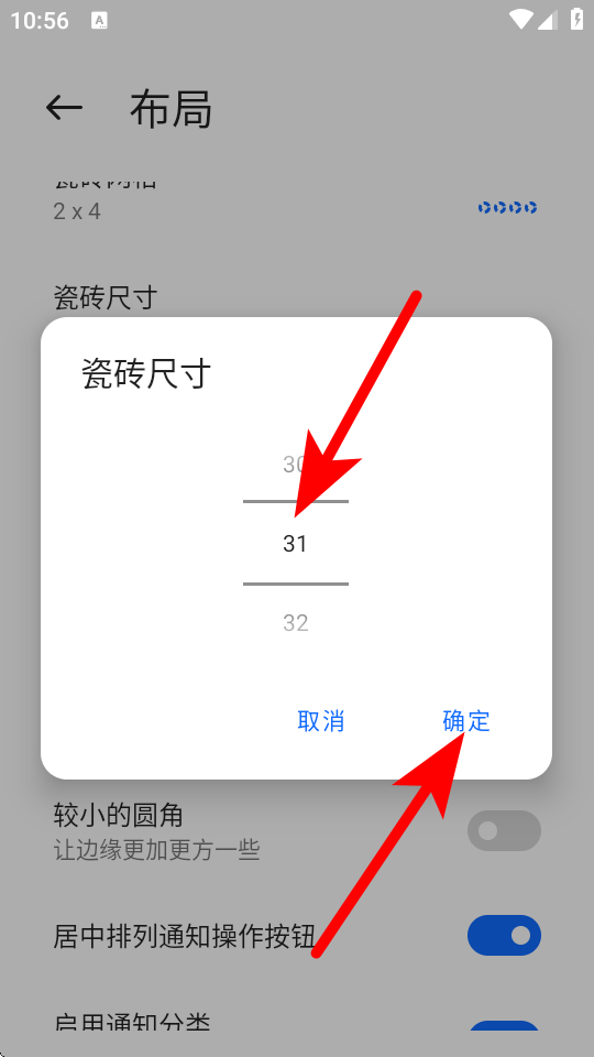 2、在布局設(shè)置界面,點(diǎn)擊瓷磚尺寸選項(xiàng),彈出瓷磚尺寸調(diào)整窗口。