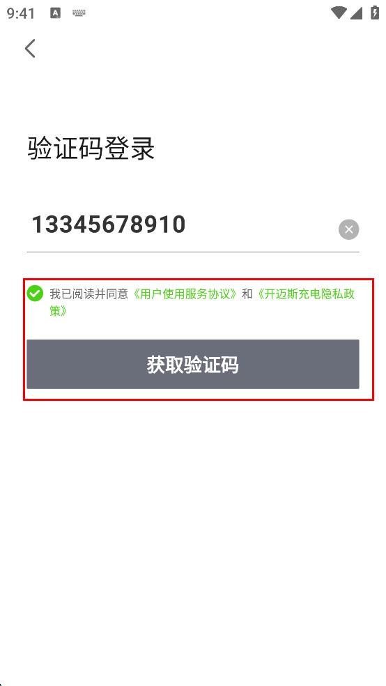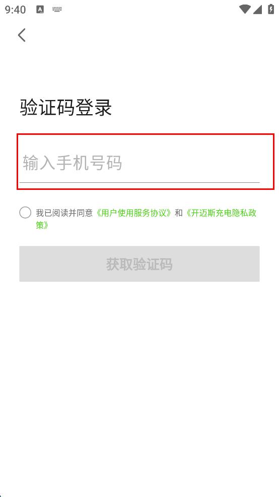 4、輸入獲取到的驗證碼,即可完成開邁斯充電軟件的登錄。