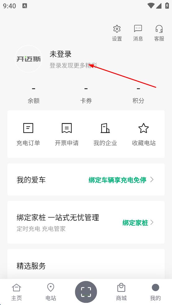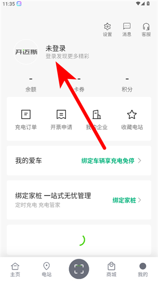 1、在開邁斯充電樁APP主頁,點擊右下角我的選項,進入個人中心頁面。