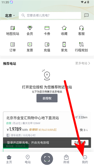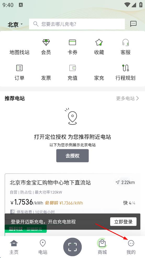 1、打開開邁斯充電軟件,進入主頁后,點擊頁面右下角的“我的”選項。