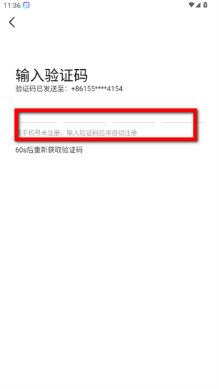 4、在輸入驗證碼界面,輸入收到的驗證碼,即可完成注冊操作。