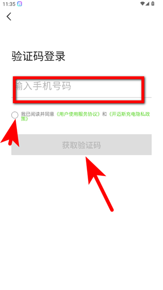 3、在驗證碼登錄界面,輸入手機號碼并勾選協(xié)議后,點擊獲取驗證碼。