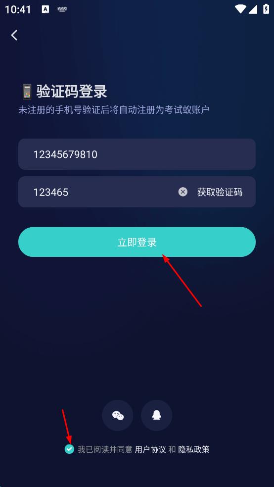 4、勾選“我已閱讀并同意用戶協(xié)議和隱私政策”,然后點(diǎn)擊“立即登錄”按鈕。