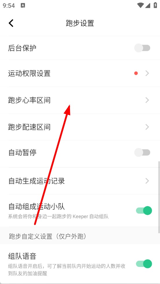 1、打開Keep,進入跑步設置界面,點擊跑步心率區(qū)間選項。
