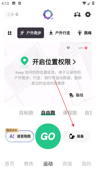 2、在運動頁面,點擊裝備選項。