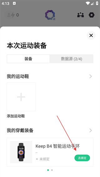 3、在本次運動裝備頁面找到對應的手環(huán),點擊去綁定。