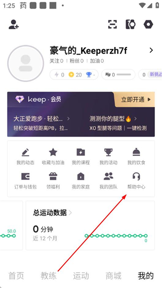 1、打開Keep首頁,點擊底部“我的”選項,進入個人頁面。