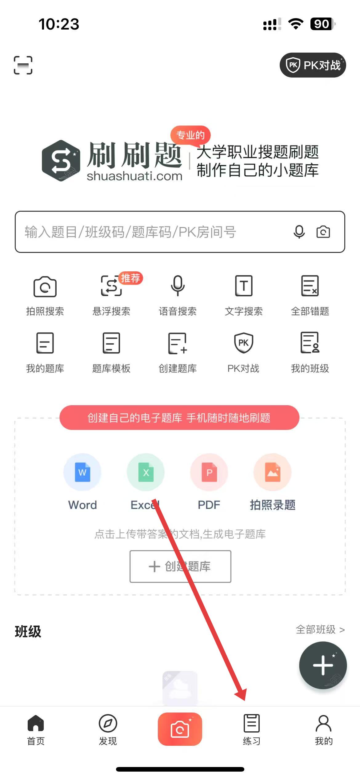 1、打開(kāi)刷刷題app,點(diǎn)擊底部導(dǎo)航欄中的練習(xí)按鈕,進(jìn)入相關(guān)界面。