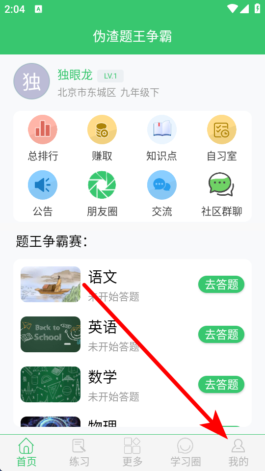 1、在偽渣題王爭(zhēng)霸的首頁,需要點(diǎn)擊底部我的,進(jìn)入個(gè)人頁面。