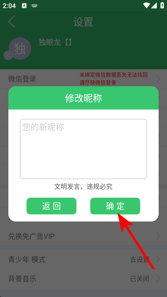 4、在修改昵稱的窗口中,輸入新昵稱后點(diǎn)擊確定,完成改名操作。