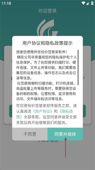 1、點擊同意并繼續(xù)按鈕,確認(rèn)用戶協(xié)議和隱私政策提示。