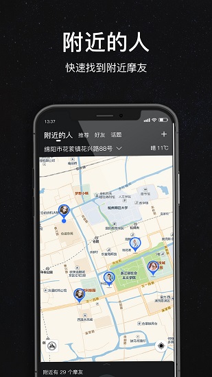 1、一鍵就可以發(fā)現(xiàn)自己附近的人,可以一起約著去騎行,有任何的線下活動可以及時的查看;