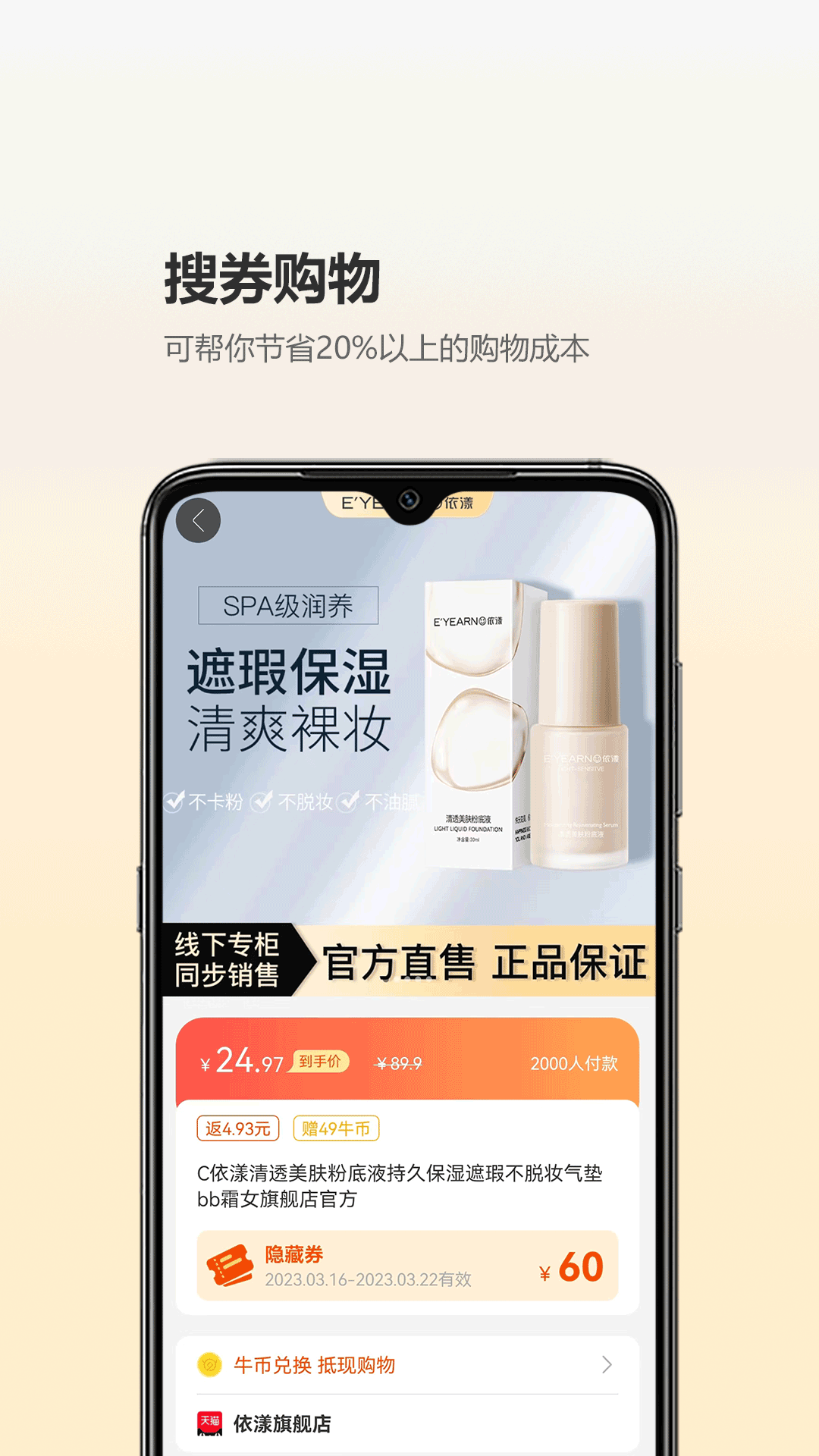 1.在領(lǐng)取優(yōu)惠券購(gòu)物的同時(shí)還可獲得傭金返利。