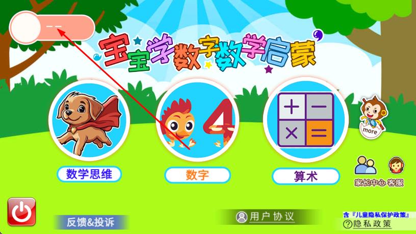 1、打開(kāi)寶寶學(xué)數(shù)字?jǐn)?shù)學(xué)啟蒙,點(diǎn)擊頁(yè)面左上角的頭像區(qū)域。