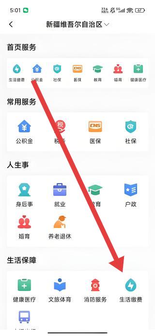 2、在應用編輯的服務分類中,下滑找到生活保障板塊,選擇生活繳費選項,進入繳費業(yè)務頁面。