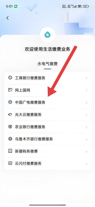 3、進入生活繳費的水電氣繳費列表,點擊中國廣電繳費服務,即可辦理相關費用繳納業(yè)務。
