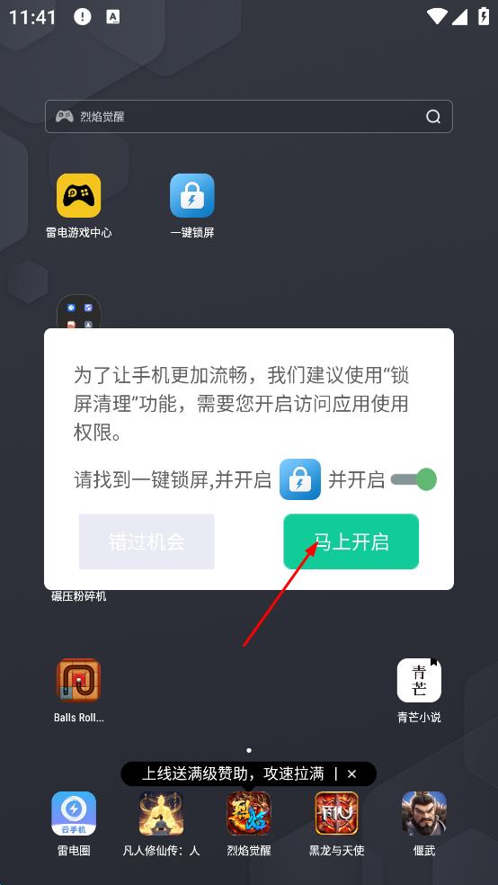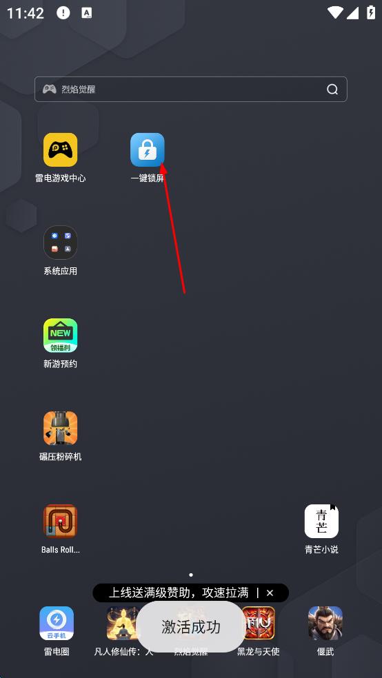 4、找到一鍵鎖屏APP并開啟權限后,即可激活成功并使用。