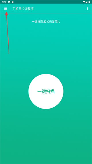 1、打開(kāi)手機(jī)照片恢復(fù)APP,在首頁(yè)內(nèi)點(diǎn)擊左上角三個(gè)橫線(xiàn)的圖標(biāo)。