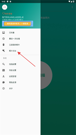 2、在左側(cè)彈出的菜單欄中,點(diǎn)擊照片優(yōu)化的功能按鈕。