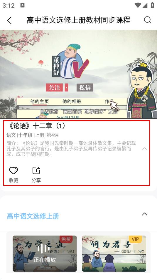 4、若要選擇其他課程,可點擊下方課程列表中的課程,如《老子》四章1等,繼續(xù)以橫屏觀看。