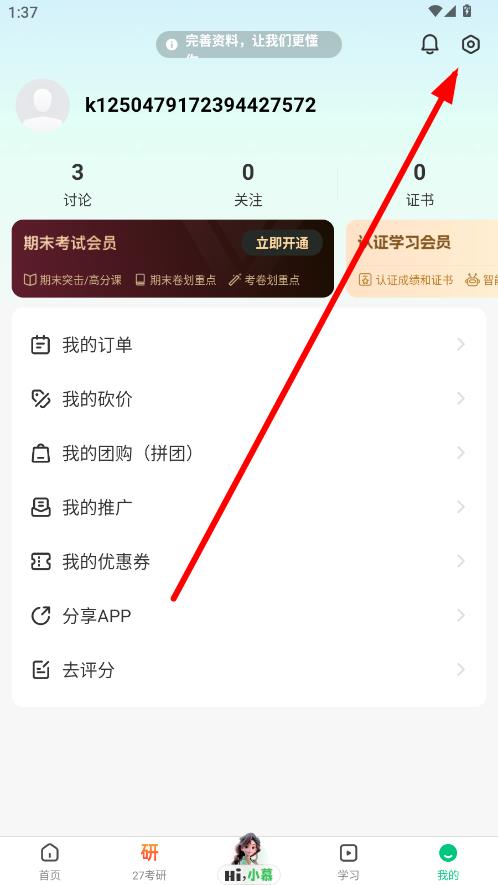2、在個(gè)人界面中,點(diǎn)擊右上角設(shè)置圖標(biāo),進(jìn)入設(shè)置頁面。