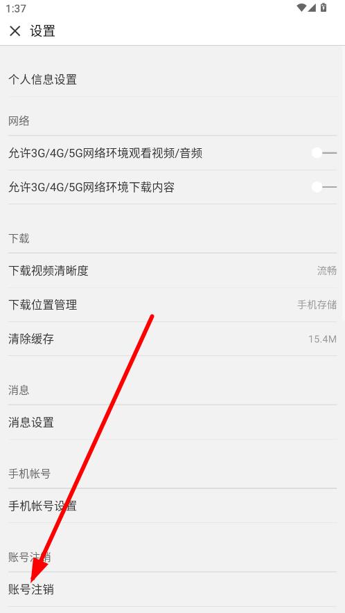 3、在設(shè)置頁面,下滑找到并點(diǎn)擊賬號(hào)注銷選項(xiàng)。