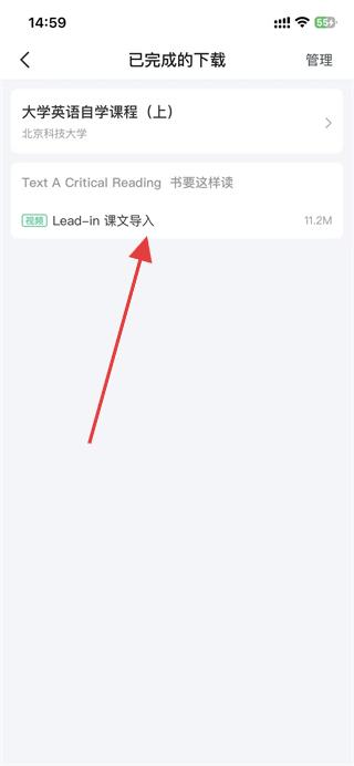 3、進(jìn)入下載頁面后,選擇并點(diǎn)擊已下載的課程。