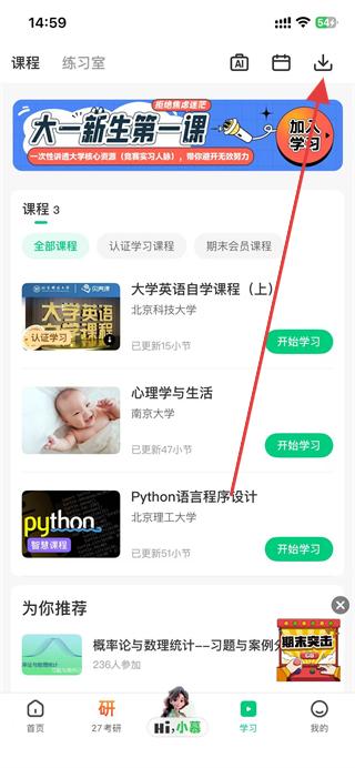 2、在學(xué)習(xí)頁面中,找到并點(diǎn)擊右上角的下載圖標(biāo)。