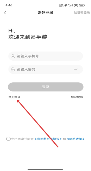 3、在登錄界面點擊“注冊賬號”,進入注冊頁面。