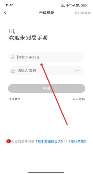4、在密碼登錄頁面輸入手機號和密碼,,點擊“登錄”,完成密碼登錄操作。
