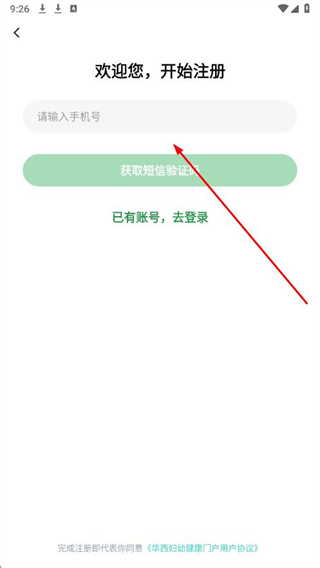 3、在注冊頁面輸入手機號,點“獲取短信驗證碼。