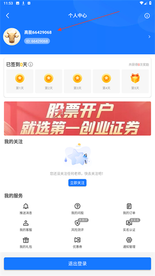 1、打開高能智投APP,進(jìn)入時(shí)點(diǎn)擊左上方人像的圖標(biāo)。