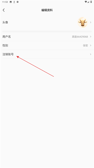 3、進(jìn)入編輯資料的頁面內(nèi),點(diǎn)擊下方注銷賬號的按鈕。