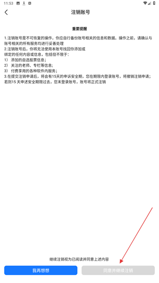 4、了解注銷須知后,點(diǎn)擊右下方同意并繼續(xù)注銷即可。
