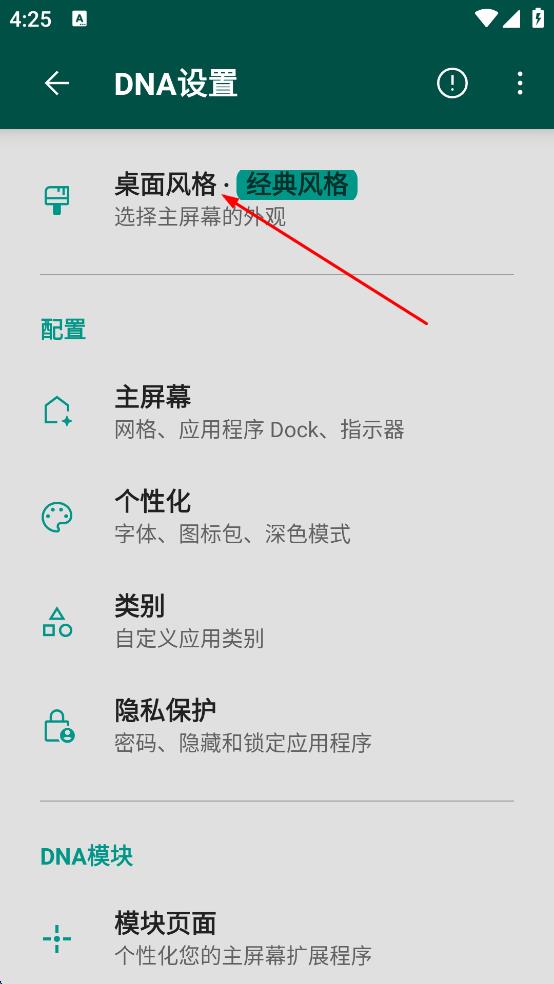 2、返回主屏幕,再次點(diǎn)擊“DNA設(shè)置”圖標(biāo),進(jìn)入“DNA設(shè)置”頁(yè)面,找到“桌面風(fēng)格”選項(xiàng)并點(diǎn)擊。