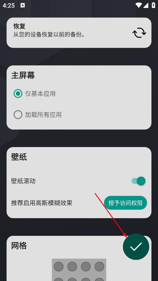 1、在主屏幕找到“DNA設(shè)置”應(yīng)用圖標(biāo)并點(diǎn)擊,進(jìn)入設(shè)置界面,在相關(guān)配置區(qū)域完成操作后,點(diǎn)擊底部綠色勾選按鈕確認(rèn)。