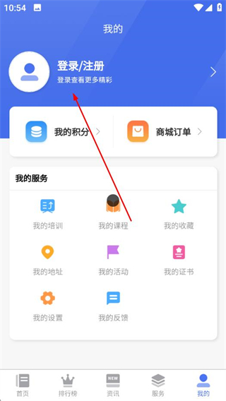 2、在我的頁(yè)面點(diǎn)擊登錄/注冊(cè)區(qū)域。