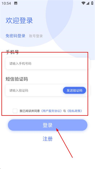 3、輸入手機(jī)號(hào)碼和驗(yàn)證碼,勾選同意協(xié)議,點(diǎn)擊登錄。