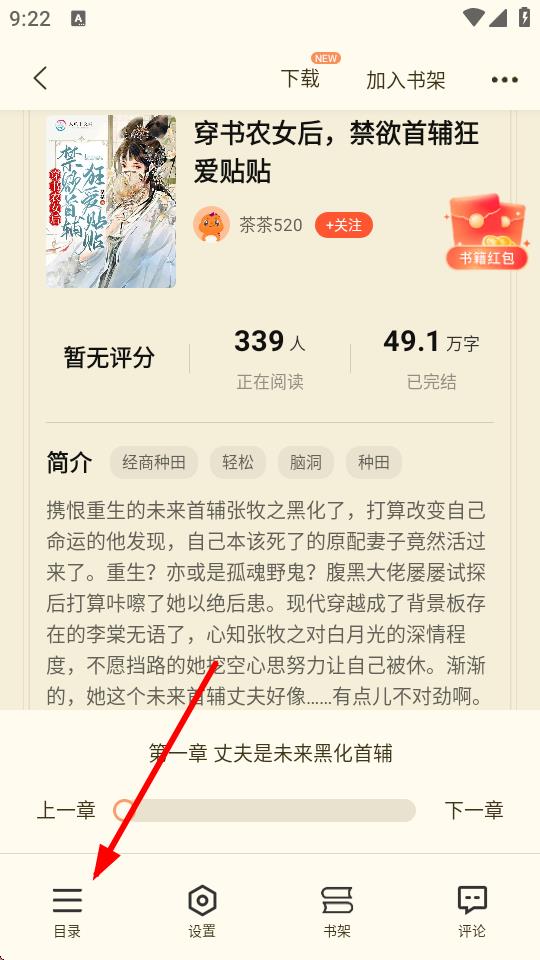 3、進(jìn)入小說(shuō)詳情頁(yè)后,點(diǎn)擊頁(yè)面左下角的目錄按鈕。