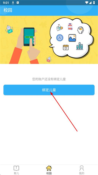 1、打開孩子國(guó)APP,在校園頁面點(diǎn)擊綁定兒童。