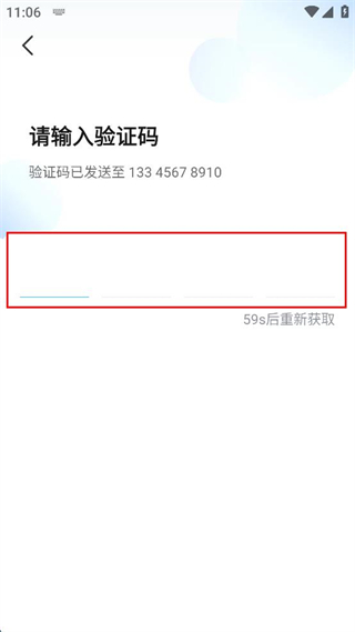 4、進入驗證碼輸入頁面,等待系統(tǒng)向填寫的手機號發(fā)送驗證碼,在輸入框中填寫收到的內(nèi)容。